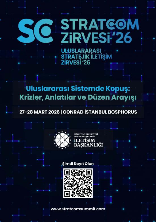 “Uluslararası Stratejik İletişim Zirvesi”nin (Stratcom Summit) beşincisi bu yıl “Uluslararası Sistemde Kopuş: Krizler, Anlatılar ve Düzen Arayışı” temasıyla 27-28 Mart 2026 tarihlerinde İstanbul’da gerçekleştirilecektir.