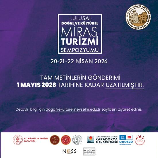 I.Ulusal Doğal ve Kültürel Miras Turizmi Sempozyumu kapsamında Tam Metinlerin Gönderimi 1 Mayıs 2026 tarihine kadar uzatılmıştır.