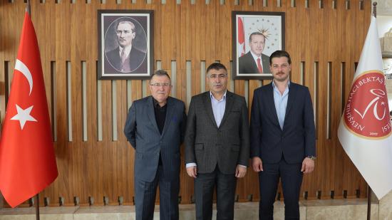 Nevşehir Hacı Bektaş Veli Üniversitesi (NEVÜ) Derinkuyu Emineana ve Yaşar Ertaş Tarım ve Hayvancılık Meslek Yüksekokulu’nu yaptıran hayırsever iş insanı Hamza Ertaş, oğlu Deniz Ertaş ile birlikte NEVÜ Rektörü Prof. Dr. Semih Aktekin’i ziyaret etti.