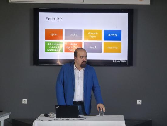 Nevşehir Hacı Bektaş Veli Üniversitesi (NEVÜ) Millî Teknoloji Atölyesi’nde, Eğitim Fakültesi Bilgisayar ve Öğretim Teknolojileri Eğitimi Anabilim Dalı Başkanı Doç. Dr. Şeyhmus Aydoğdu’nun konuşmacı olarak katıldığı “Yapay Zekâ: Fırsatlar ve Tehditler” başlıklı bilim söyleşisi gerçekleştirildi.