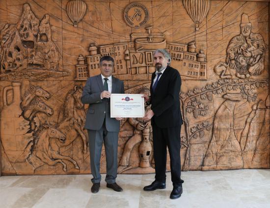 Nevşehir Hacı Bektaş Veli Üniversitesi (NEVÜ) Rektörü Prof. Dr. Semih Aktekin, Yükseköğretim Kurulu (YÖK) tarafından “2025 Engelsiz Üniversite Ödülleri” kapsamında NEVÜ’ye gönderilen bayrak ve belgeleri düzenlenen törenle akademik birimlere teslim etti.