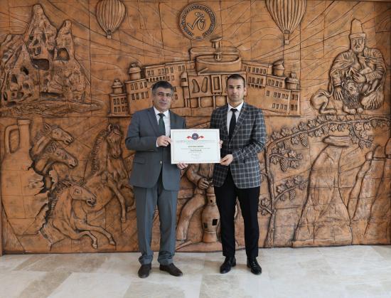 NEVÜ Rektörlük Makamında düzenlenen törene; Rektör Prof. Dr. Semih Aktekin’in yanı sıra Rektör Yardımcıları Prof. Dr. Bayram Deviren ve Prof. Dr. Mutluhan Akın, Eğitim Fakültesi Dekanı Prof. Dr. Mustafa Tahiroğlu, Semra ve Vefa Küçük Sağlık Bilimleri Fakültesi Dekanı Prof. Dr. Şahlan Öztürk, Sağlık Hizmetleri Meslek Yüksekokulu Müdürü Doç. Dr. Kamuran Özdil, Derinkuyu Emineana ve Yaşar Ertaş Tarım ve Hayvancılık Meslek Yüksekokulu Müdürü Dr. Öğr. Üyesi Coşkun Aslan, Engelsiz Üniversite Birim Koordinatörü Dr. Öğr. Üyesi Pınar Demiryürek ve Genel Sekreter Nihat Çavuşoğlu katıldı.
