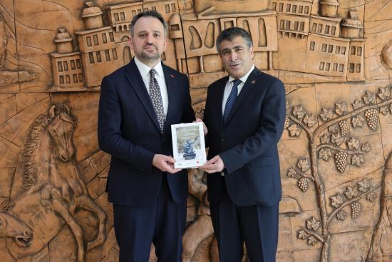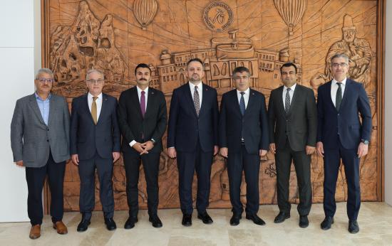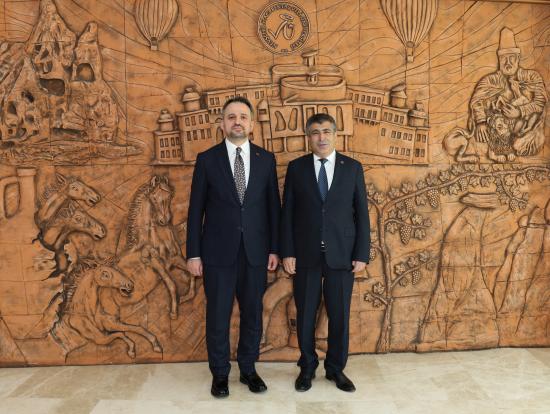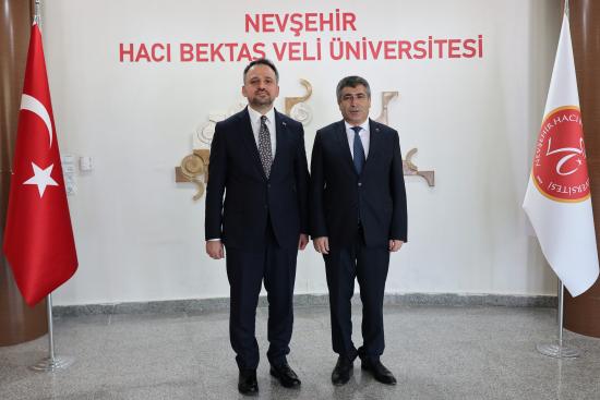 T.C. Gençlik ve Spor Bakanlığı Gençlik Hizmetleri Genel Müdürlüğü koordinasyonunda ve Nevşehir Hacı Bektaş Veli Üniversitesi (NEVÜ) ev sahipliğinde düzenlenen “11. Gençler Arası Kültür ve Sanat Yarışması İç Anadolu Bölge Finalleri”ne katılmak üzere Nevşehir’e gelen Gençlik ve Spor Bakan Yardımcısı Dr. Enes Eminoğlu, NEVÜ Rektörü Prof. Dr. Semih Aktekin’i ziyaret etti.